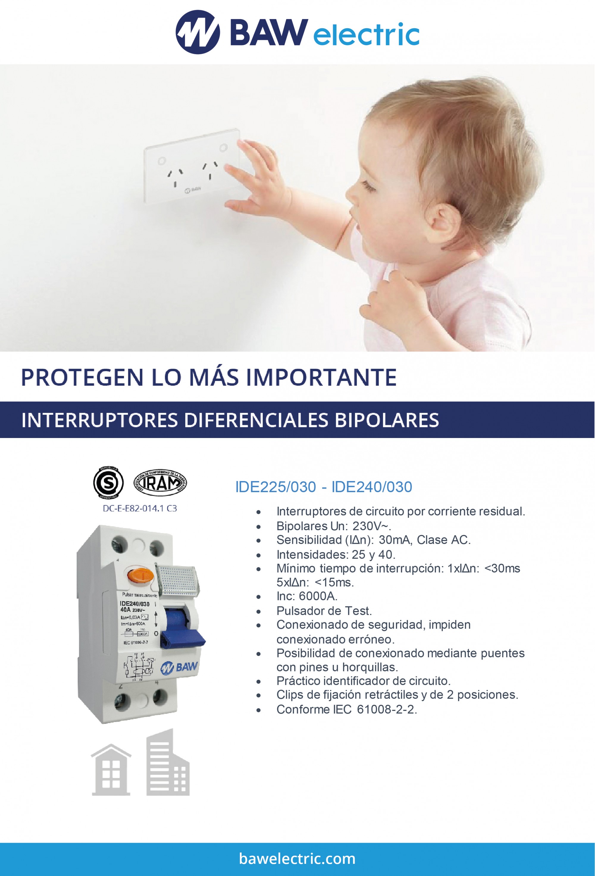 Interruptor diferencial 2P In=40A I∆n=30mA "AC" Inc=6kA.