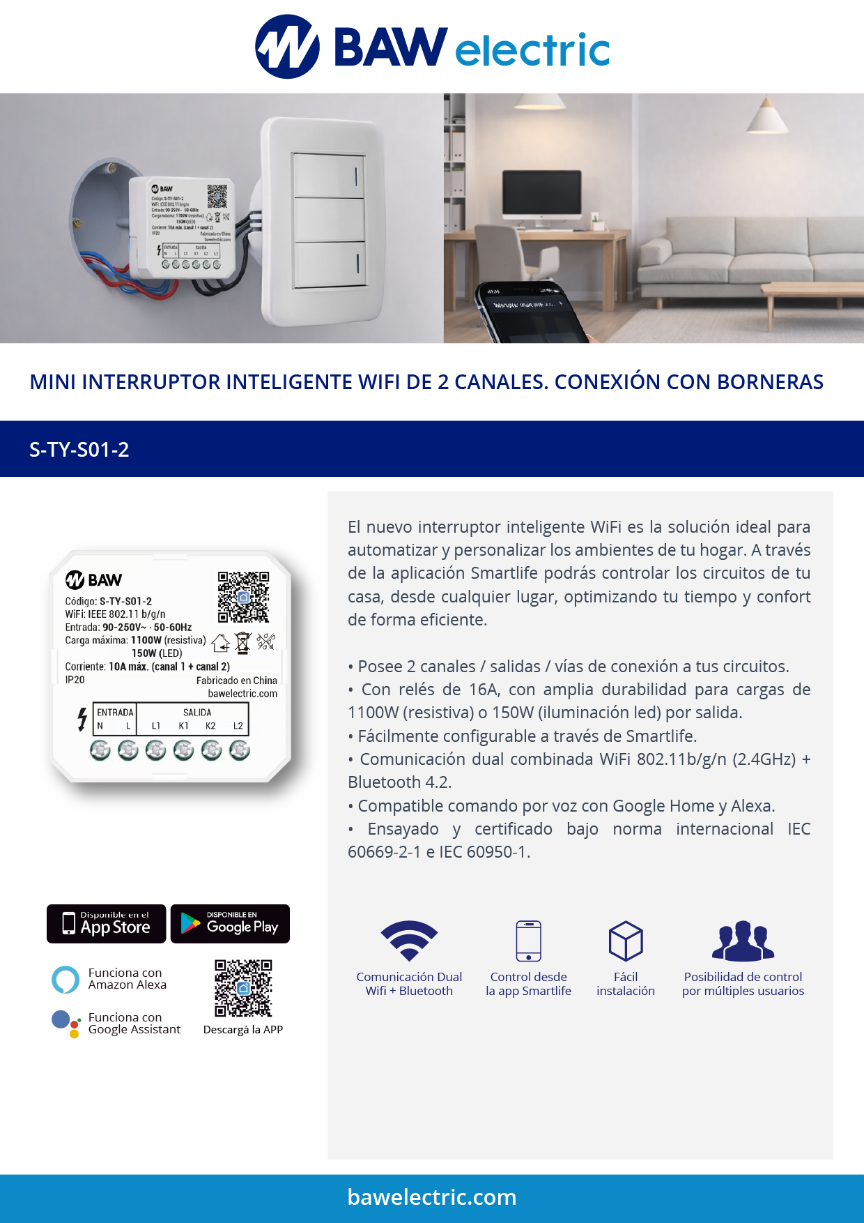 El nuevo interruptor inteligente WiFi es la solución ideal para automatizar y personalizar los ambientes de tu hogar. A través de la aplicación SmartLife podrás controlar la iluminación de tu casa, desde cualquier lugar, optimizando tu tiempo y confort de forma eficiente.