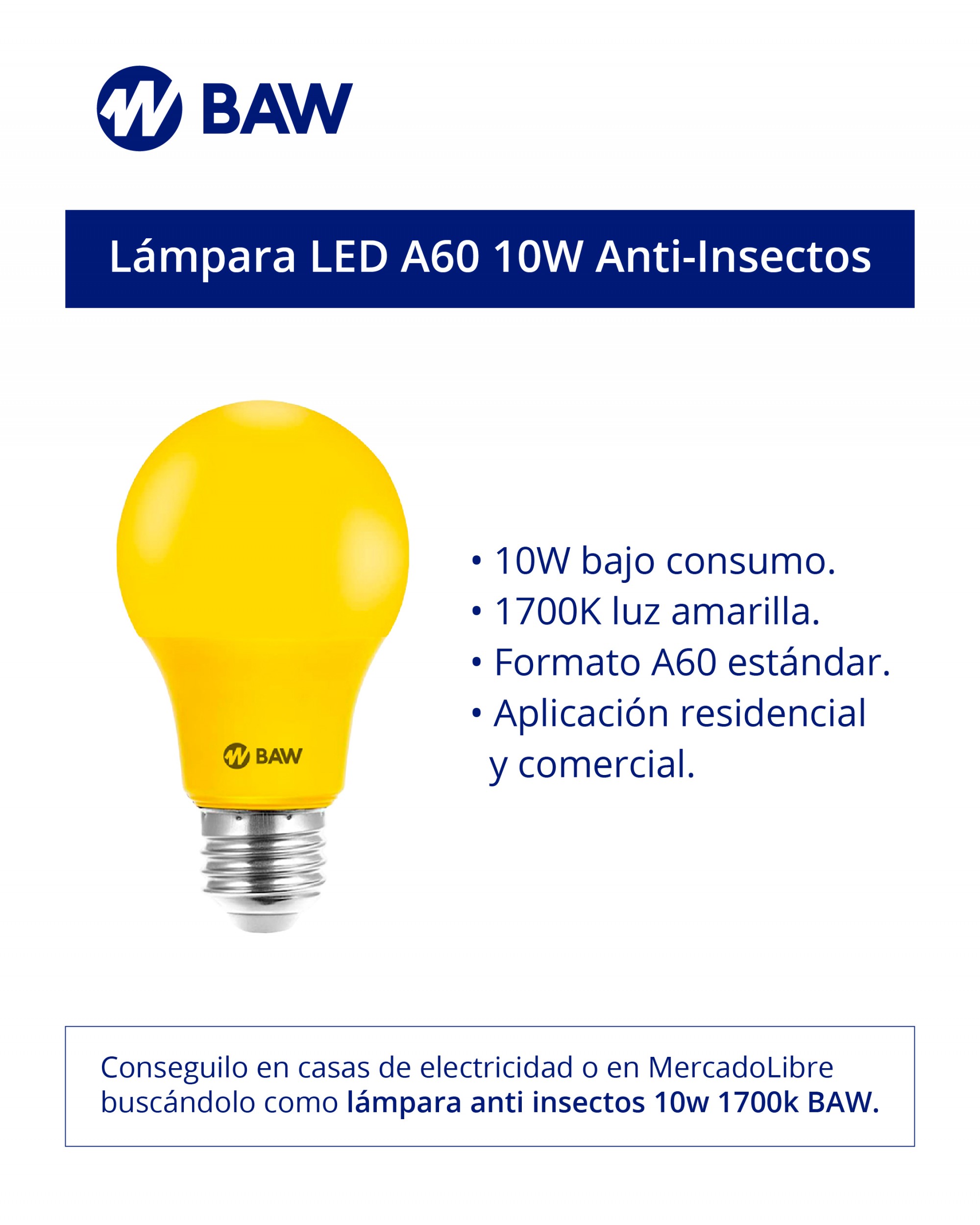 Lámpara LED A60 10W, ANTI-INSECTOS, 1700° K (Luz Amarilla)