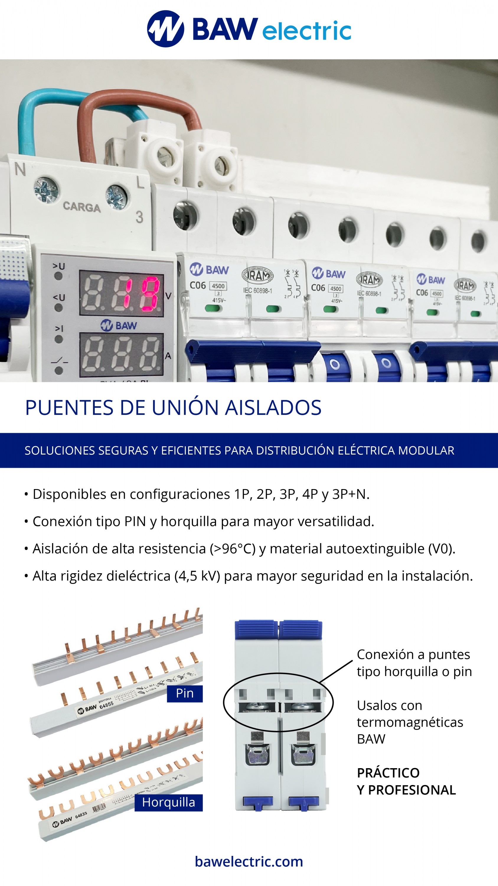 Optimizá tus instalaciones con nuestros puentes de conexionado, diseñados para una distribución rápida, segura y ordenada en tableros eléctricos. Fabricados con materiales de alta calidad y excelente resistencia térmica.