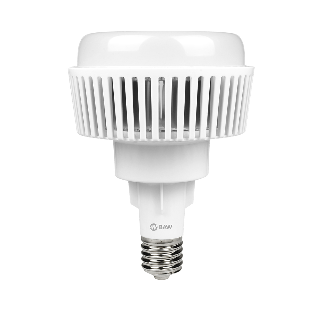 Un: 220V~, Frecuencia: 50-60Hz, Potencia: 100W, Flujo: 9000lm, Eficacia: 90lm/W, Clase: A+, CRI: >80Ra, 6500° K, FP: 0,5, 20.000hs., E27, Ø151x290mm., Certificado: M 9695/1 Revisión B - IQC S.A.